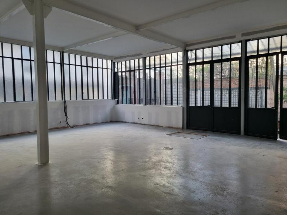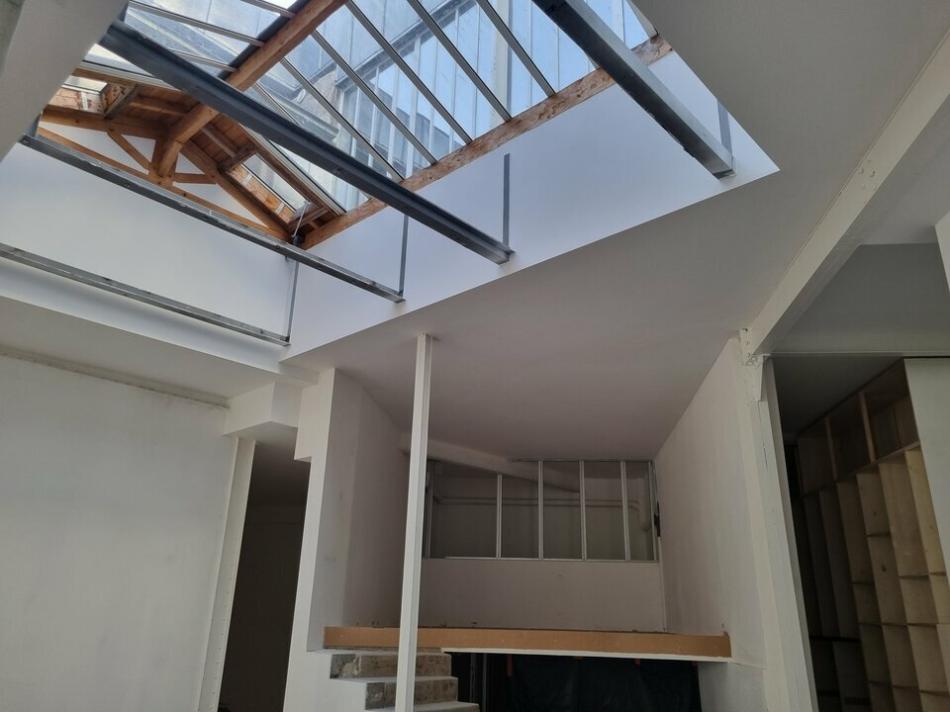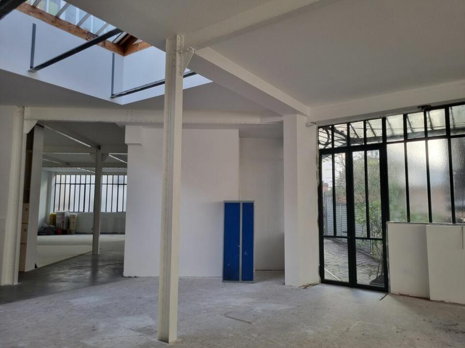 EXC LUSIVITÉ .RARE .A VENDRE A PARIS 20éme, proche GAMBETTA, 433 m² de locaux atypiques au sein d'une ancienne manufacture, dans un quartier dynamique, au rez-de-chaussée surélevé d'un immeuble de type industriel des années 1890, un vaste local se composant entre autre, d'une 1ère salle de 120 m² d'un seul tenant (sans porteurs), 4 mètres de hauteur sous plafond, une 2ème salle bénéficiant également de beaux volumes et d'une entrée indépendante, parties sous verrières, une mezzanine pouvant accueillir des espaces privés. Donnant en extérieur sur une charmante cour pavée et arborée. Les locaux rénovés seront livrés : fluides en attente, arrivée électrique (compteur individuel). Activités autorisées : bureaux, show-room, photographes, galerie, métiers de la com., coworking, architectes, etc.