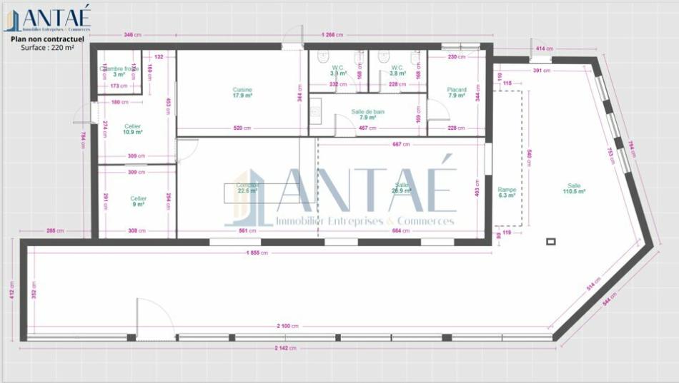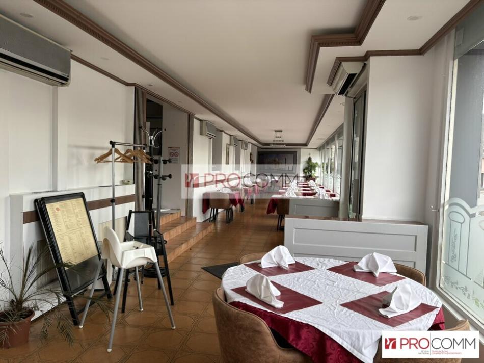 Le rez-de-chaussée se compose de quatre salles, d'une cuisine, de sanitaires, d'une réserve, d'une chambre froide et d'un bureau. Le bien dispose également d'une cave en sous-sol, d'un parking ainsi que de deux réserves extérieures.