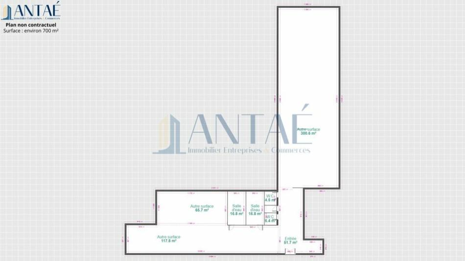 Deux espaces principaux d'environ 300 m² et 185 m²
