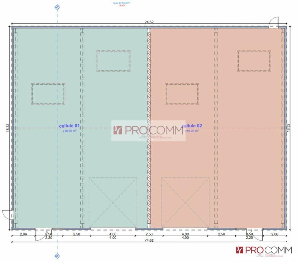Locaux bruts d'aménagement avec vitrine, 432 m² ou possibilité de diviser en 2 lots de 216 m²