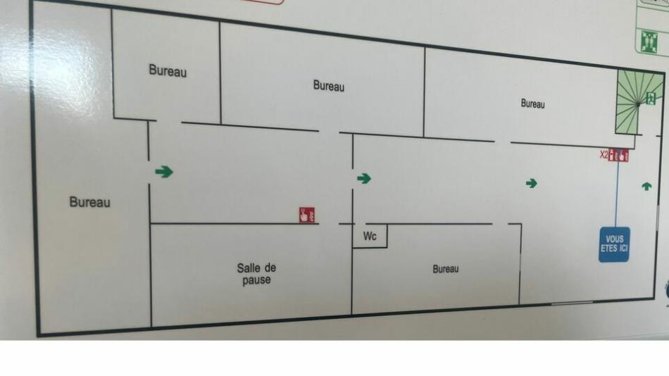 Bureau de 13.70 m² au 1er étage, espaces communs (sanitaires et cuisine)