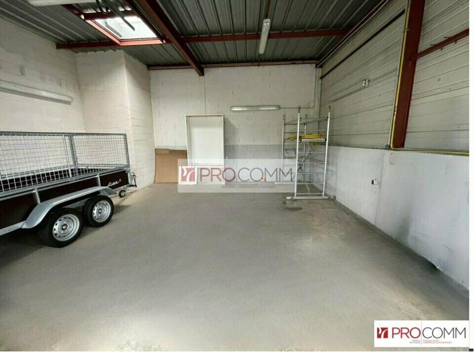 Un local d'activité de 110 m² comprenant des sanitaires et une porte sectionnelle.