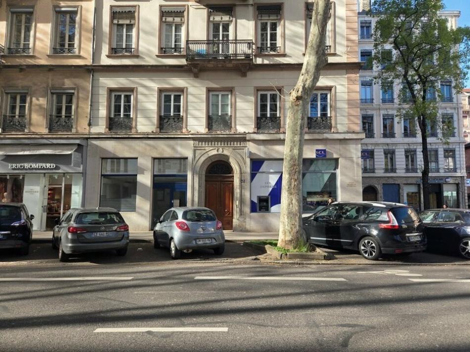 Lyon 6, cours Franklin Roosevelt, location sans droit d'entrée d'une boutique de 43 m² avec réserve de 25 m². La réserve est complétée d'une surface identique en soupente ( hauteur 1.75). Les locaux constituent un rectangle simple, sans contrainte et sont faciles à aménager. Climatisation réversible. Carrelage au sol blanc. Disponible au 1er Septembre 2026. Prévoir frais de rédaction de bail.