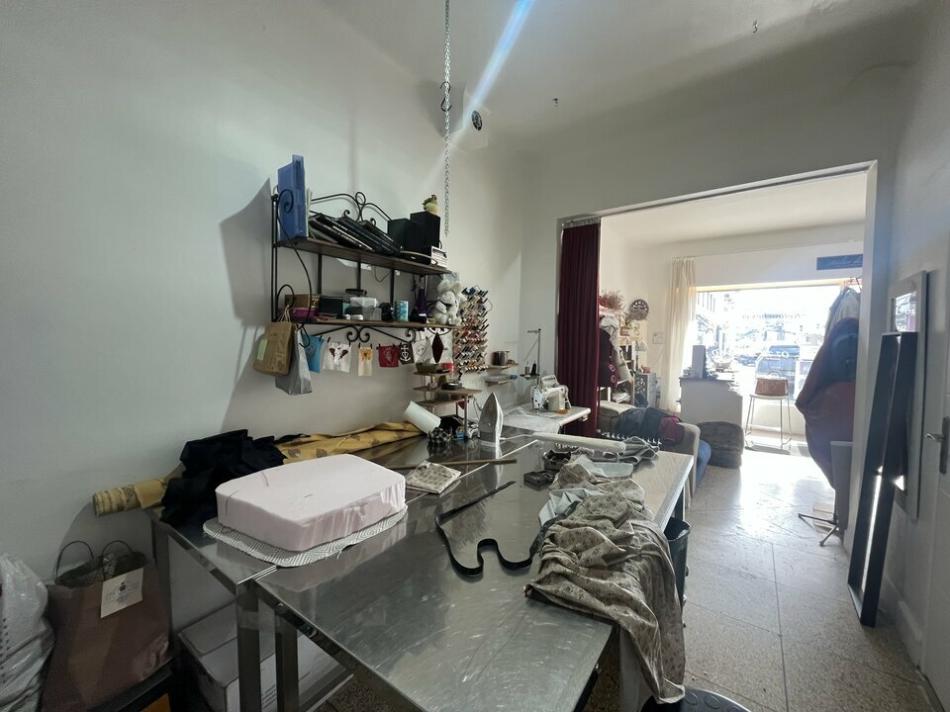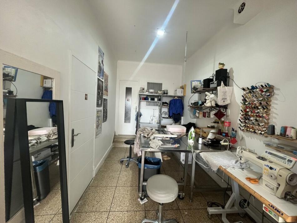 Équipements : Coin kitchenette fonctionnel, réserve ou arrière-boutique, et toilettes séparées avec point d'eau.